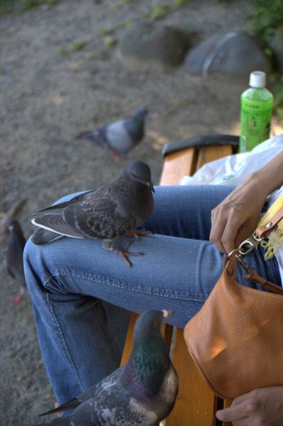カモにパンを投げていたらハトもわんさか集まってきました。