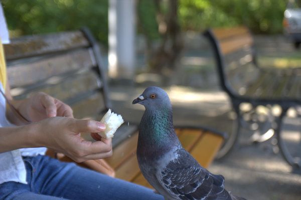 手渡ししようとすると逃げていくハトたちの中にチャレンジャーが。